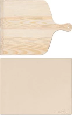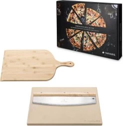 Navaris XL Pour Four, Grill Et Barbecue – Assiette à Pizza Rectangulaire 38 X 30 Cm – Set Comprenant Une Pelle à Pizza En Bambou Et Un Coupe-herbes Mezzaluna