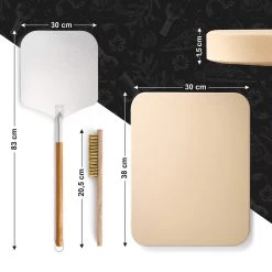 Pierre à Pizza Buxibo – Pour BBQ Et Four – Planche De Service Incluse – Planche à Pizza / étagère à Pizza – 30,5 X 38,1 X 11 Cm