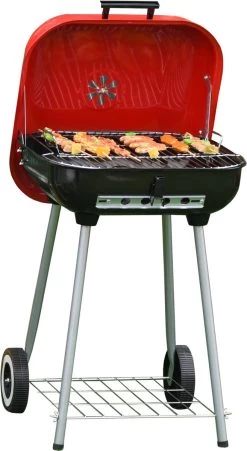 Barbecue à Charbon Outsunny Sur Roulettes Barbecue Chariot Boule Barbecue Grill Avec Couvercle BBQ Métal Rouge 01-0569