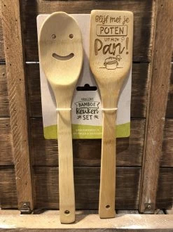 Miko Ensemble De Cuisine En Bambou Avec Texte Gardez Vos Pieds Hors De Ma Poêle