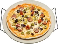 Pierre à Pizza En Céramique Ronde 33 Cm Avec Poignées – Avec Ciseaux à Pizza Noir 30 Cm – Pierre à Pizza BBQ/ Four