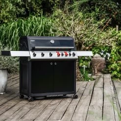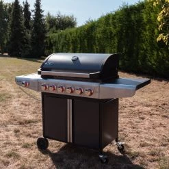 Barbecue à Gaz Bazin 6 Anthracite 6 Brûleurs 1 Brûleur Latéral Avec Panneaux Latéraux Et Thermomètre – Raccordement Gaz G1 2 F15-21 Inclus.
