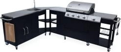 Barbecue à Gaz Rochefort 5 Brûleurs évier Planche à Découper Batterie De Cuisine Plan De Travail Et Thermomètre – Raccordement Au Gaz G1 2 F15-21