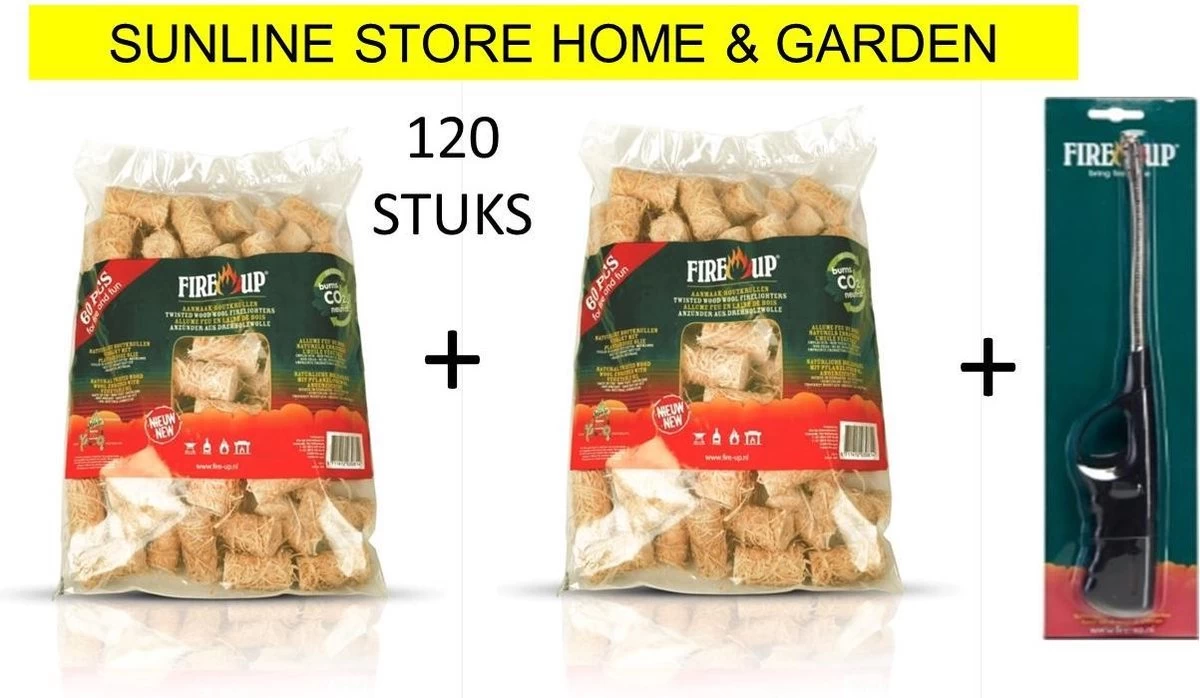 2 sacs Copeaux de bois (wokkels) de 60 pièces par sac, avec briquet à gaz gonflable Turbo avec col flexible.
