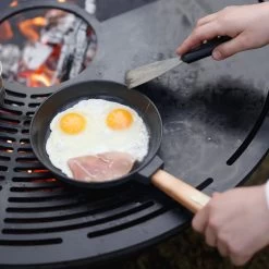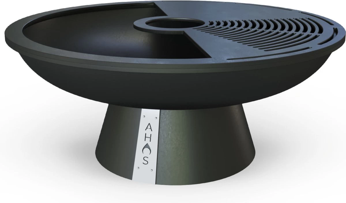 Les bols à feu AHOS sont tous équipés d’un anneau de gril amovible. Cet anneau de gril est fabriqué en acier au carbone de haute qualité d’une épaisseur de 6 mm. Parce que les bords de l’anneau du gril sont pliés vers l’intérieur, l’huile chaude ne s’écoulera pas du plat, mais s’y écoulera. L’anneau du gril est doté d’un revêtement antiadhésif multicouche qui empêche les aliments de coller à l’anneau du gril. De plus, le revêtement antiadhésif prolonge la durée de vie de l’anneau du gril. En plus des options ci-dessus, l’anneau de gril a des trous de convection pour une meilleure répartition de la chaleur, une surface pour une poêle à frire, des fentes pour barbecue et un anneau intégré pour placer une bouilloire. Même lorsque l’anneau du gril est sur le panier à feu, il est possible de mettre du bois de chauffage dans le bol, de sorte que le feu reste allumé. Parce que le bol est au ras du sol, il peut être placé parfaitement entre un groupe de personnes assises, de sorte que les gens se réchauffent lorsqu’il se refroidit à l’extérieur.