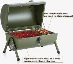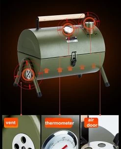Ce barbecue au charbon de bois est le compagnon idéal de toutes vos soirées BBQ estivales ! Il a une belle forme cylindrique et offre suffisamment d’espace pour griller pour 2 à 4 personnes, ce qui le rend idéal pour le camping, les pique-niques ou tout simplement pour griller à l’extérieur.