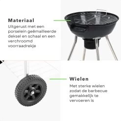 Le barbecue à Charbon de bois rond de Luxe Cheqo® est équipé de 2 roues pour que vous puissiez le déplacer facilement. De cette façon, vous pouvez le placer à tout moment à l’endroit idéal de votre jardin. La conception robuste du barbecue le rend facile à utiliser et sûr.