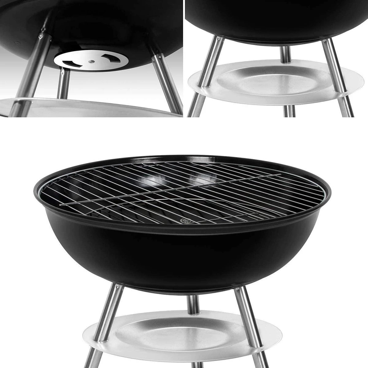 Barbecue à Charbon Sunjas Avec Couvercle, Petit Gril à Boules, Mini Gril De Pique-nique, Gril De Camping émaillé Pour Jardin, BBQ, Etc. (noir)