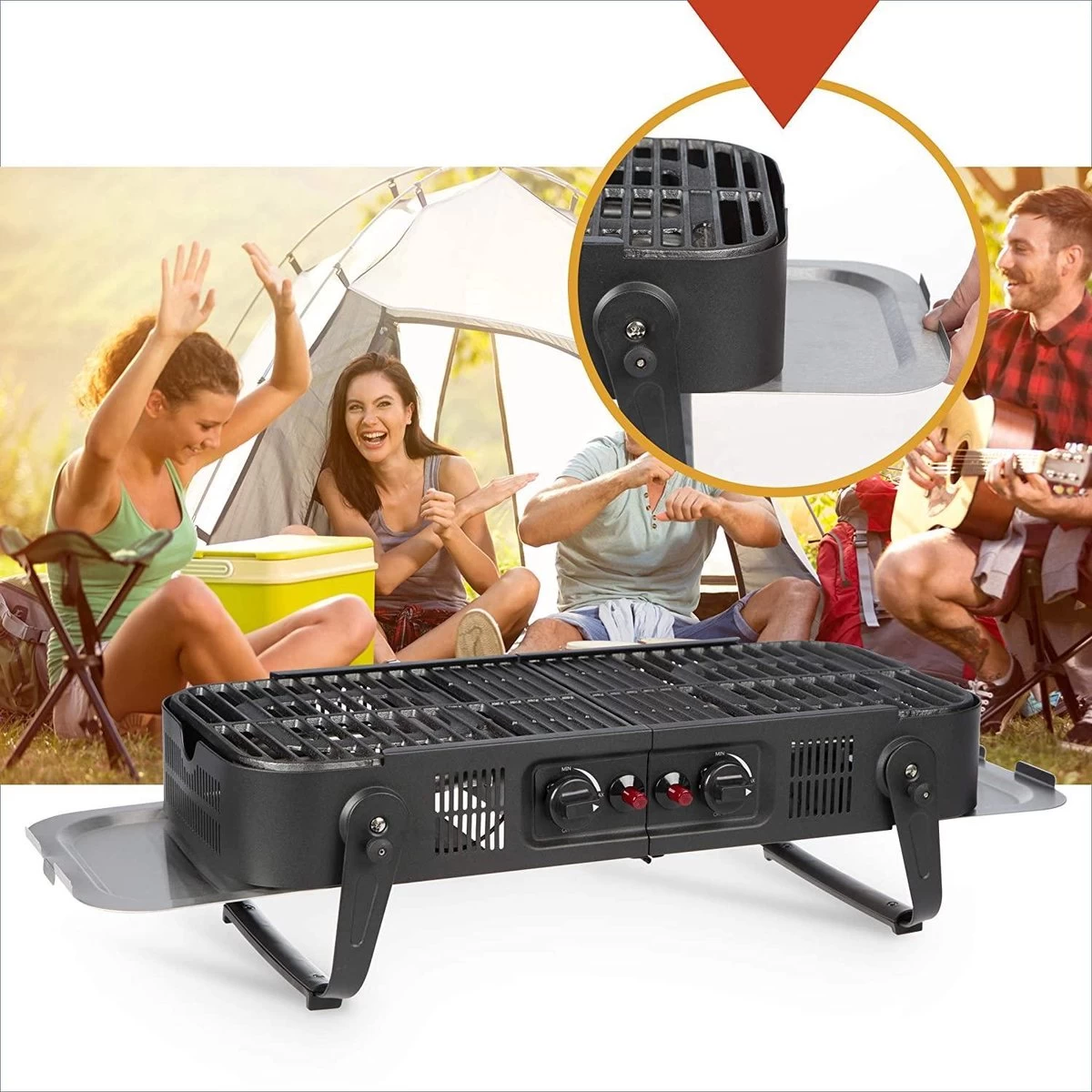 Barbecue à Gaz – Barbecue à Gaz Pliable Zinaps Barbecue à Gaz à 2 Brûleurs Avec Pliage De 3,3 KW à Emporter Avec Sac De Transport Pour Pique-niques, Balcons Et Plus Pour Cartouches De Gaz Normales 5 Kg Et 11 Kg – (WK 02124)