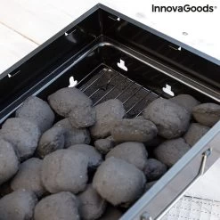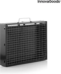 Le barbecue se distingue par son design noir tendance. La grille en acier inoxydable est dotée de poignées amovibles afin que vous ne puissiez pas vous brûler les mains bien sûr. Vous pourriez penser qu’un barbecue sur table pliante est trop petit pour faire un barbecue avec suffisamment de personnes. Rien ne pourrait être plus éloigné de la vérité! Le barbecue a une plaque de cuisson d’une largeur de 41 cm. De cette façon, aucun de vos convives ne se passera d’un morceau de viande ou de légumes !