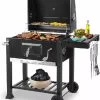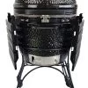 Le BBQ peut également être utilisé comme fumoir. Le produit est livré avec 2 plateaux, avec lesquels vous pouvez choisir où placer les braises. Pour que vous puissiez cuisiner directement et indirectement. Le BBQ a une poignée en bois, avec laquelle le couvercle peut être fermé et ouvert pour fumer les aliments. Au sommet du BBQ se trouve une petite cheminée, pour la circulation de l’air dans le barbecue.