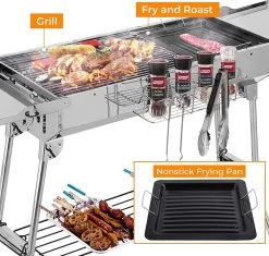 Si vous voulez profiter d’un délicieux BBQ, mettez définitivement ce gril à charbon portable en acier inoxydable avec double ailes et poêle antiadhésive dans votre panier !