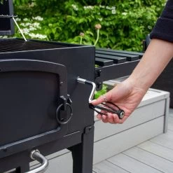 - Le Barbecue Smoker Grill dispose d’un tiroir à charbon réglable en hauteur afin que vous puissiez utiliser le système pivotant pour vous adapter à ce que vous cuisinez.