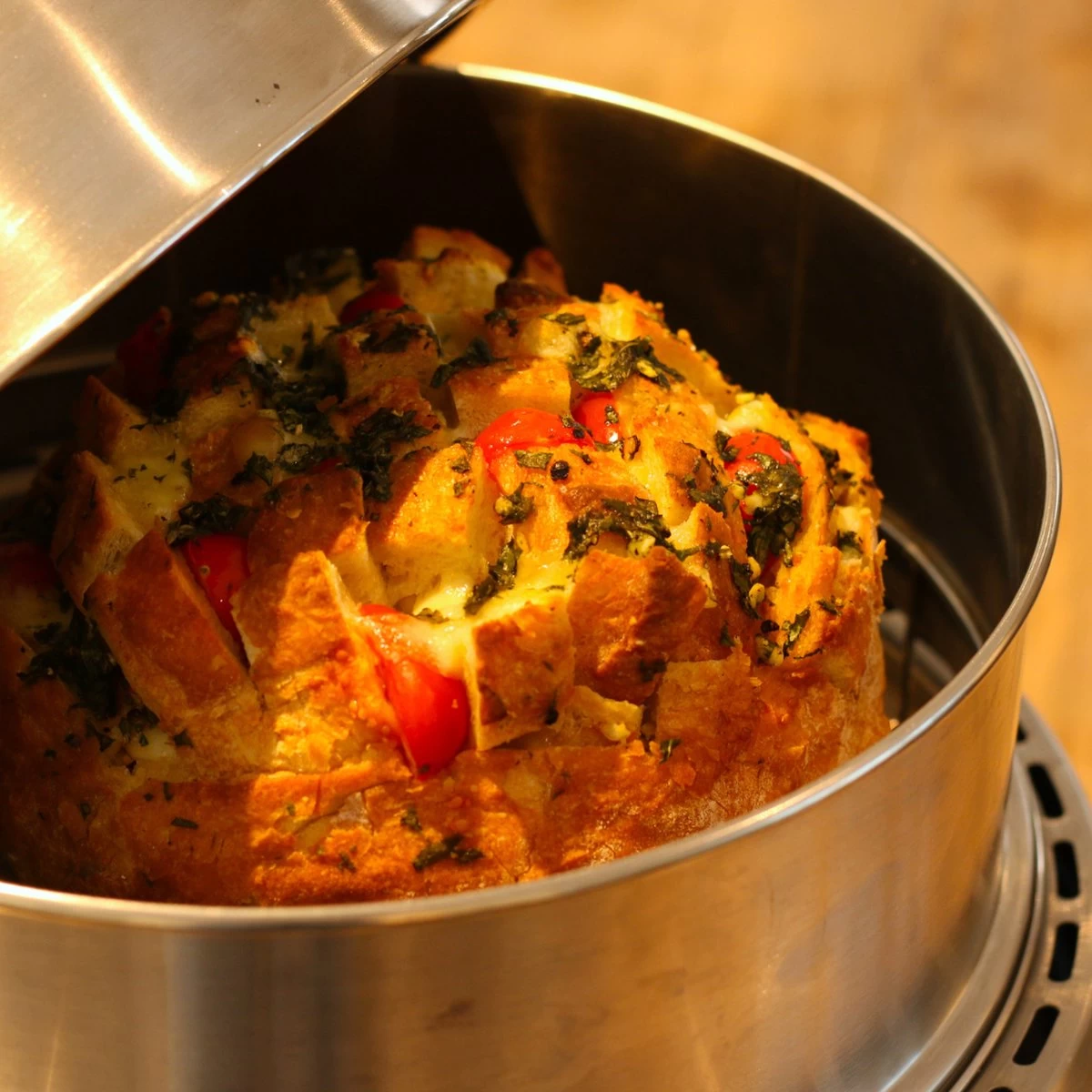 CombinĂ© avec la combinaison couvercle et grille, vous pouvez griller deux couches d’aliments en mĂŞme temps.
