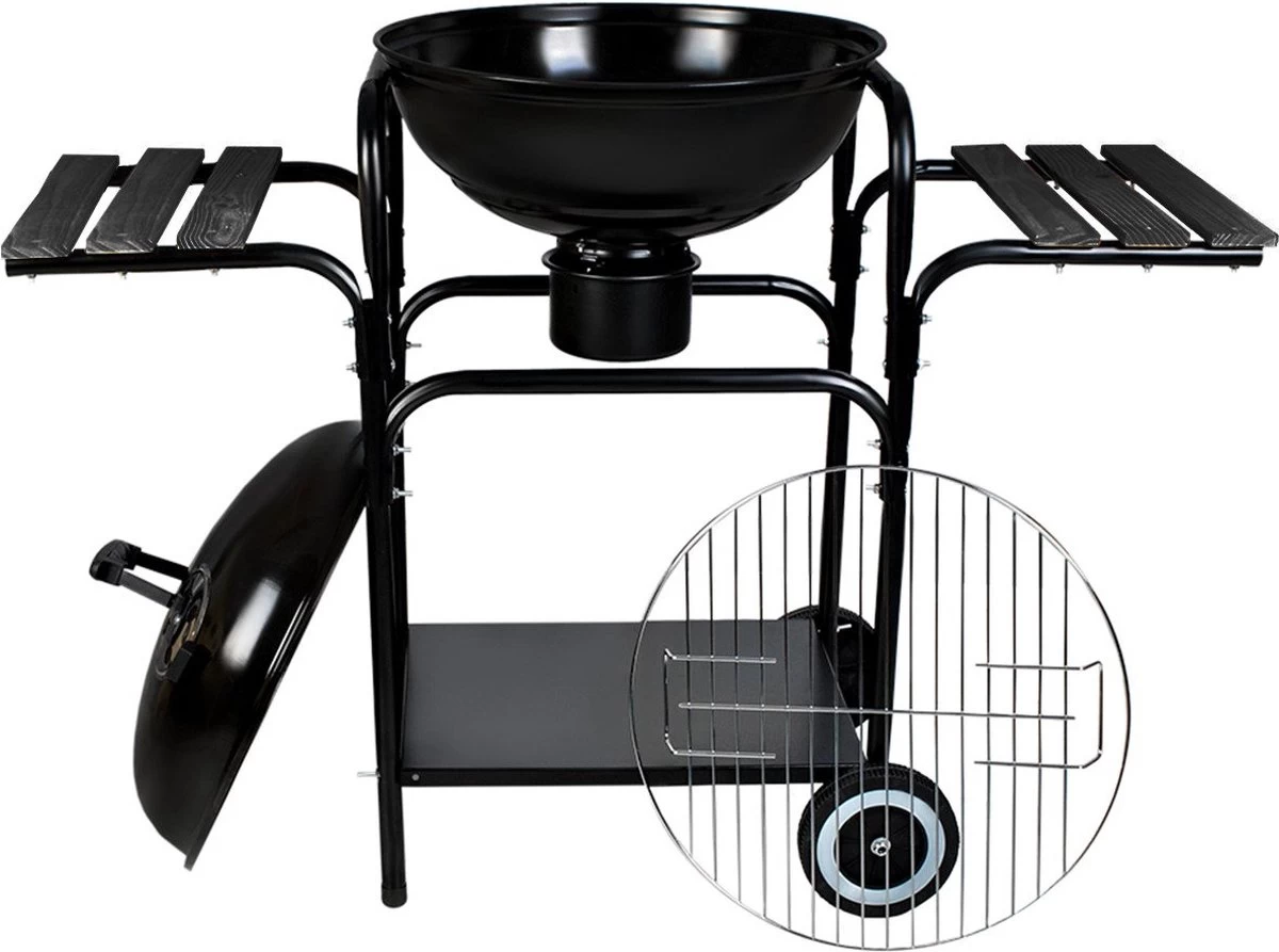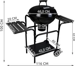 Le barbecue a une table d’appoint qui est utile pour placer les aliments et les ustensiles pendant la cuisson. Il dispose également d’un cendrier pour enlever facilement les cendres et la saleté. Le gril est facile à déplacer grâce aux roues en bas et à la poignée sur le côté.