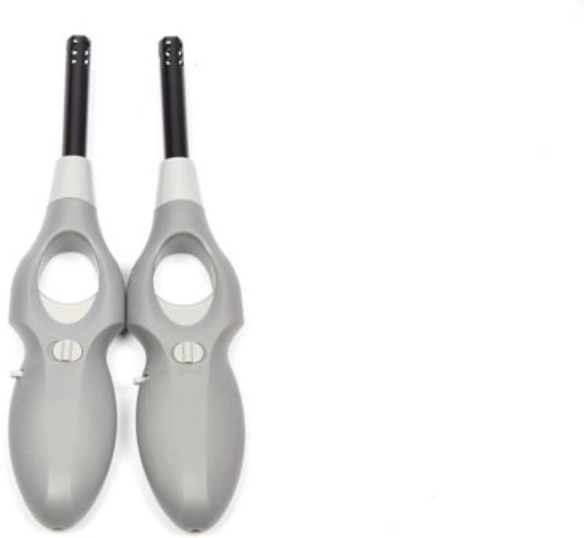 Set de 2 briquets rechargeables Ă gaz/barbecue/bougie en gris avec poignĂ©e et d’une longueur d’environ 19 cm. Vous pouvez rĂ©gler vous-mĂŞme la taille de la flamme et il y a une sĂ©curitĂ© enfant sur les briquets de la cuisine.