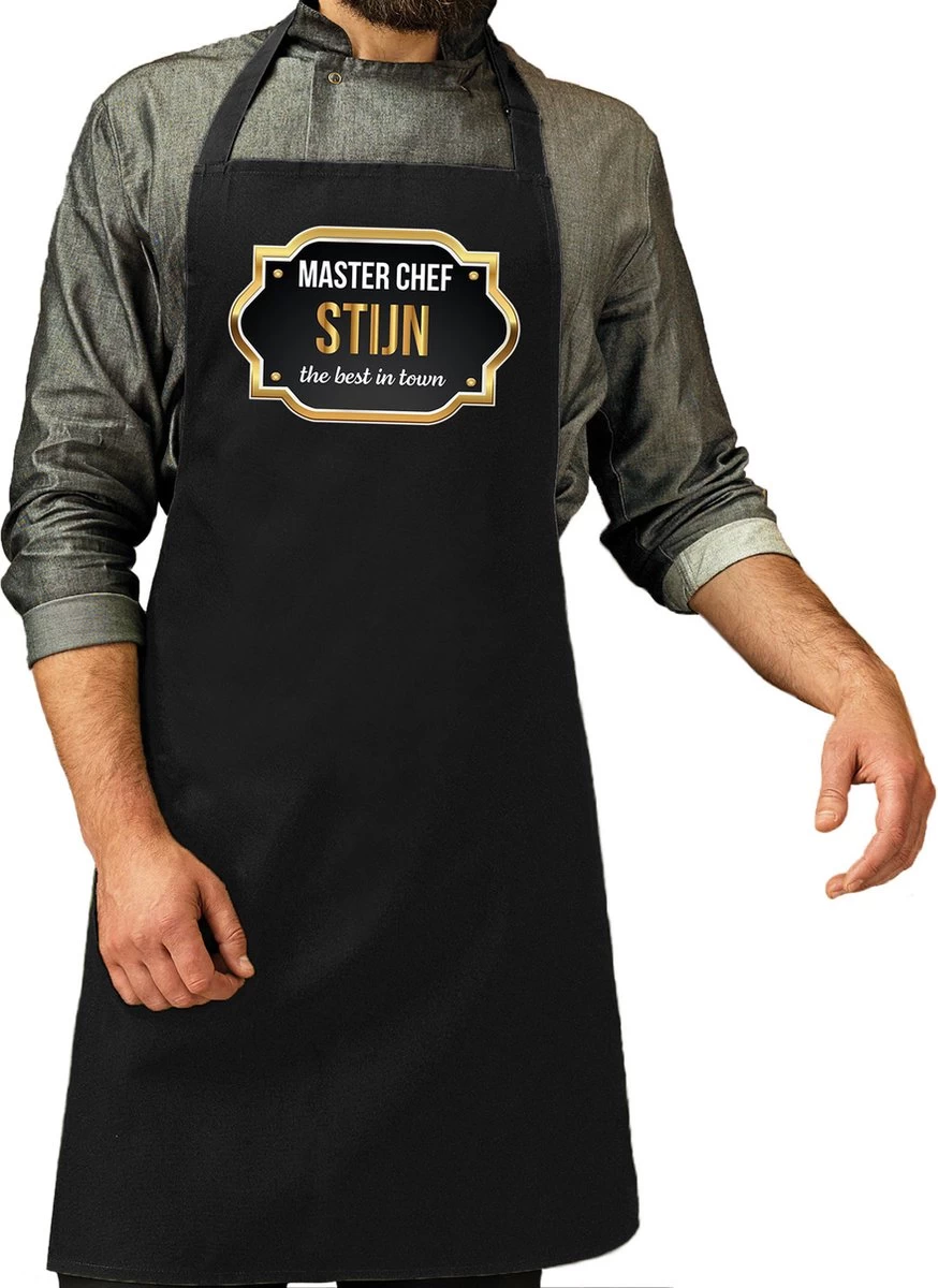 Cadeau Prénom Master Chef Stijn Tablier De Cuisine / Tablier Barbecue Noir Pour Homme / Homme – Cadeau Fête Des Pères / Anniversaire / Retraite