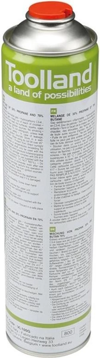 Cartouche de gaz butane / bidon de gaz, 600 ml. Cette cartouche de gaz butane se compose de 70% de gaz butane et de 30% de gaz propane et a une connexion avec un filetage de 7/16 pouces. Cette bouteille de gaz est compatible avec le brûleur à gaz, qui se trouve sous EAN: 8719538609846.