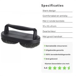 Indispensable dans tout équipement de BBQ: la brosse BBQ Cheqo®. Cette brosse fait du nettoyage de votre barbecue un jeu d’enfant. La grande poignée vous donne la force dont vous avez besoin pour frotter fort, tandis que les deux brosses rondes vous aident à nettoyer même les coins les plus difficiles à atteindre. Avec une taille globale de 19x10x8cm, la brosse est assez grande pour être efficace, mais toujours facile à ranger. La brosse BBQ Cheqo® est spécialement conçue pour vous aider à nettoyer efficacement votre barbecue. La grande poignée vous offre une prise suffisante pour frotter fort et garantit que vos mains restent suffisamment éloignées de la source de chaleur. Les deux brosses rondes facilitent le nettoyage des coins les plus difficiles d’accès. Cela signifie que vous pouvez nettoyer efficacement sans vous coincer dans la grille ou sans changer de brosse à l’infini. De plus, la brosse BBQ Cheqo® est de haute qualité et dure longtemps. Cela le rend parfait pour les personnes qui font régulièrement des barbecues. La brosse est faite de matériaux de haute qualité et peut résister à un nettoyage intensif et à l’usure. Cela signifie que vous n’avez pas à gaspiller de l’argent sur de nouvelles brosses à chaque fois. Enfin, la brosse BBQ Cheqo® est facile à nettoyer. Après avoir nettoyé votre barbecue, il ne vous reste plus qu’à le rincer et il est prêt à être utilisé lors de votre prochain barbecue.