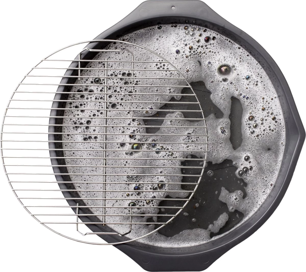- le GRILL WASH – un joli grand plateau de nettoyage dans lequel votre grille peut bien s’imprégner Chaque grille ronde (remarque : jusqu’à 48 cm) s’adapte parfaitement.
