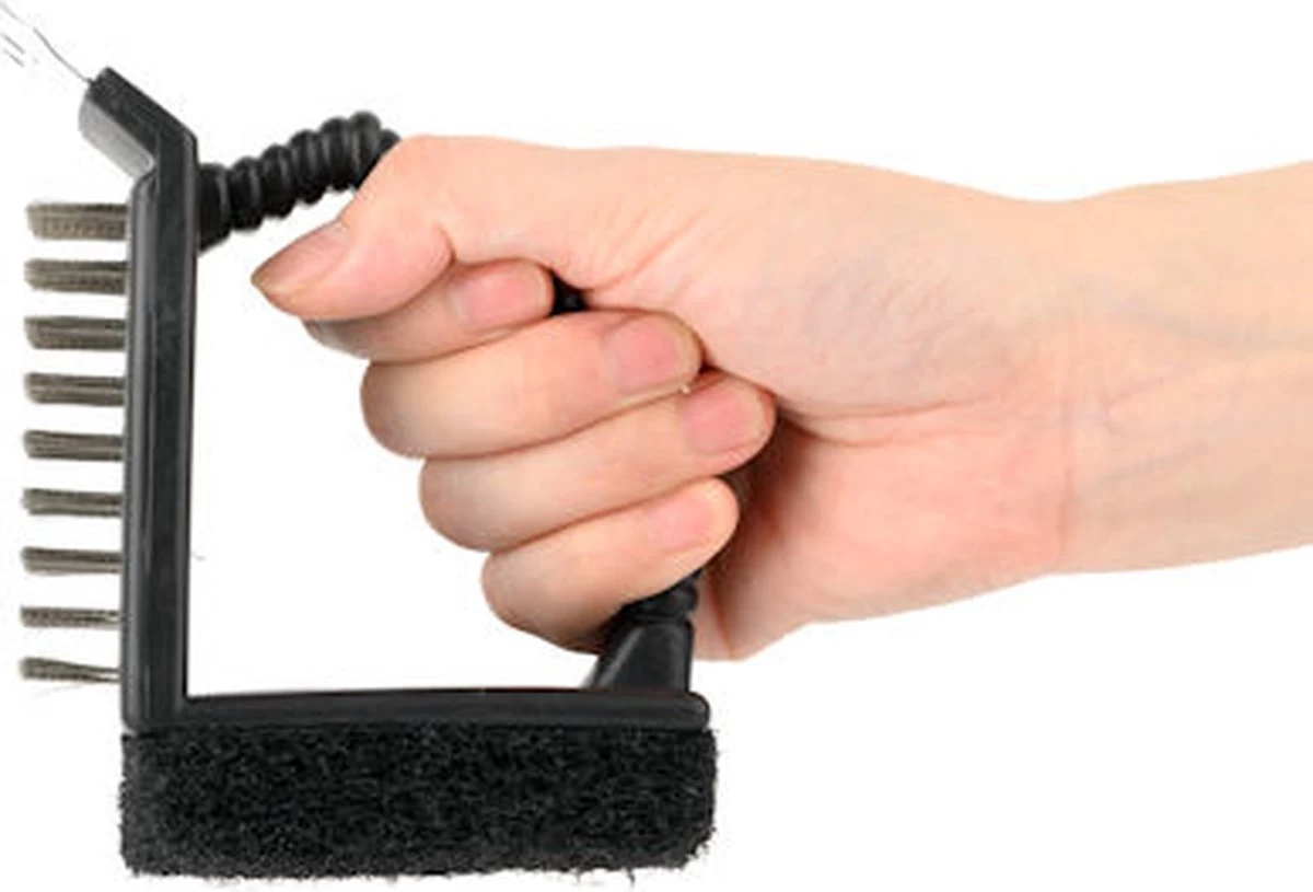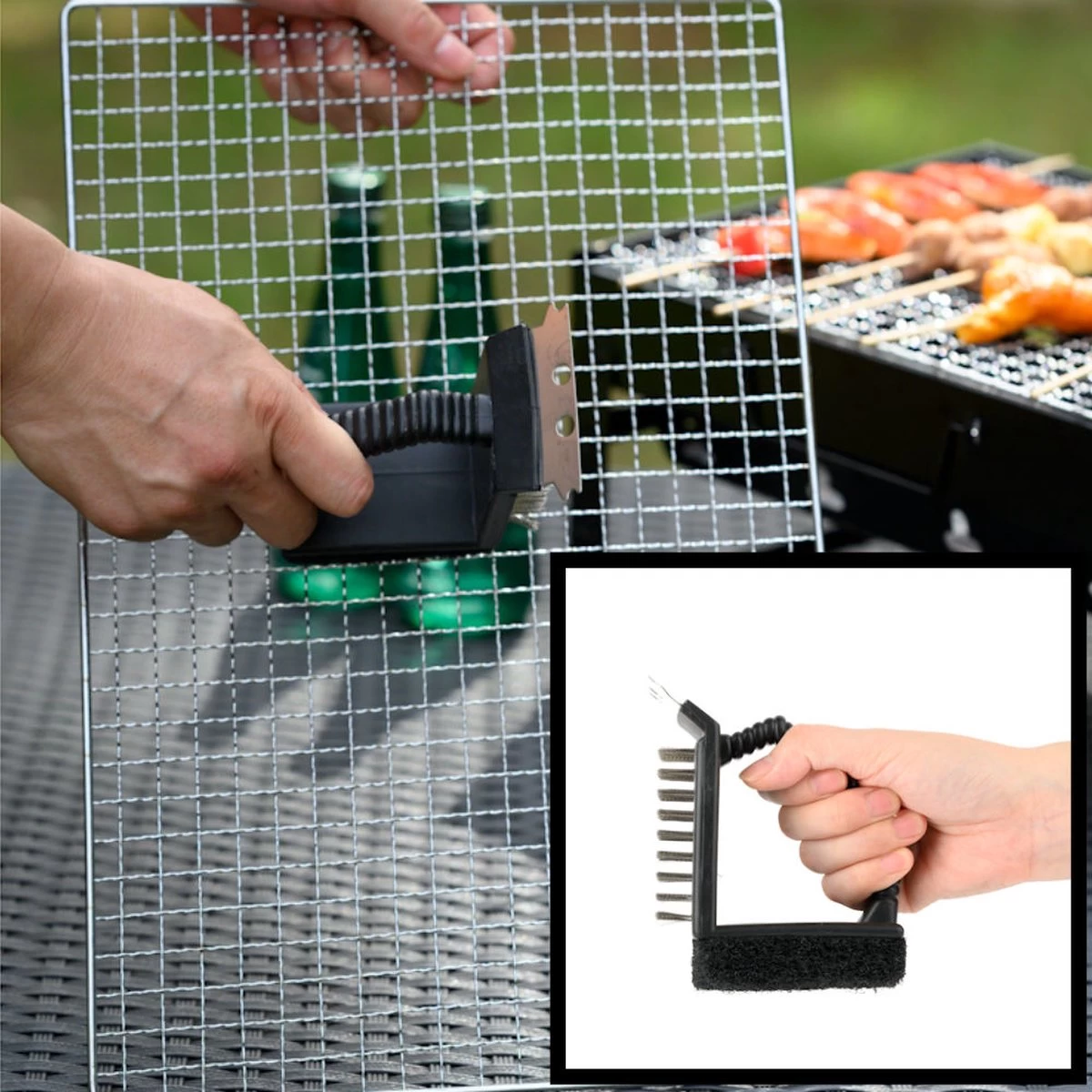 Brosse pour BBQ 3 en 1 avec grattoir, tampon à récurer et poignée