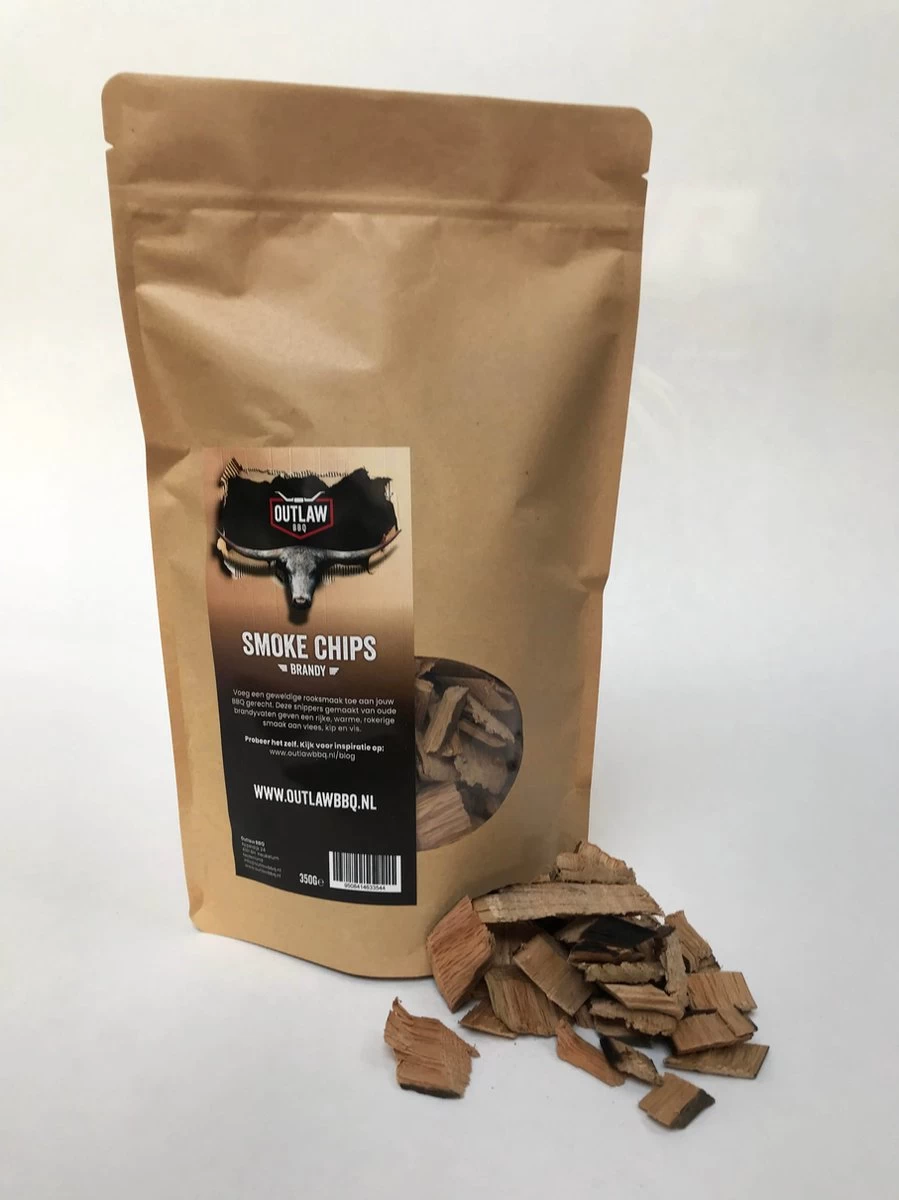 Les morceaux de fumée et les chips sont comparables à la variante au whisky. Les morceaux sont utilisés pour les plats qui doivent cuire longtemps sur le BBQ (fermé). Ou avec du bœuf qui doit être grillé brièvement. Le bœuf a une structure plus dense et absorbe moins bien la saveur de fumée. Les morceaux dégagent une saveur de fumée plus forte que les copeaux de fumée.