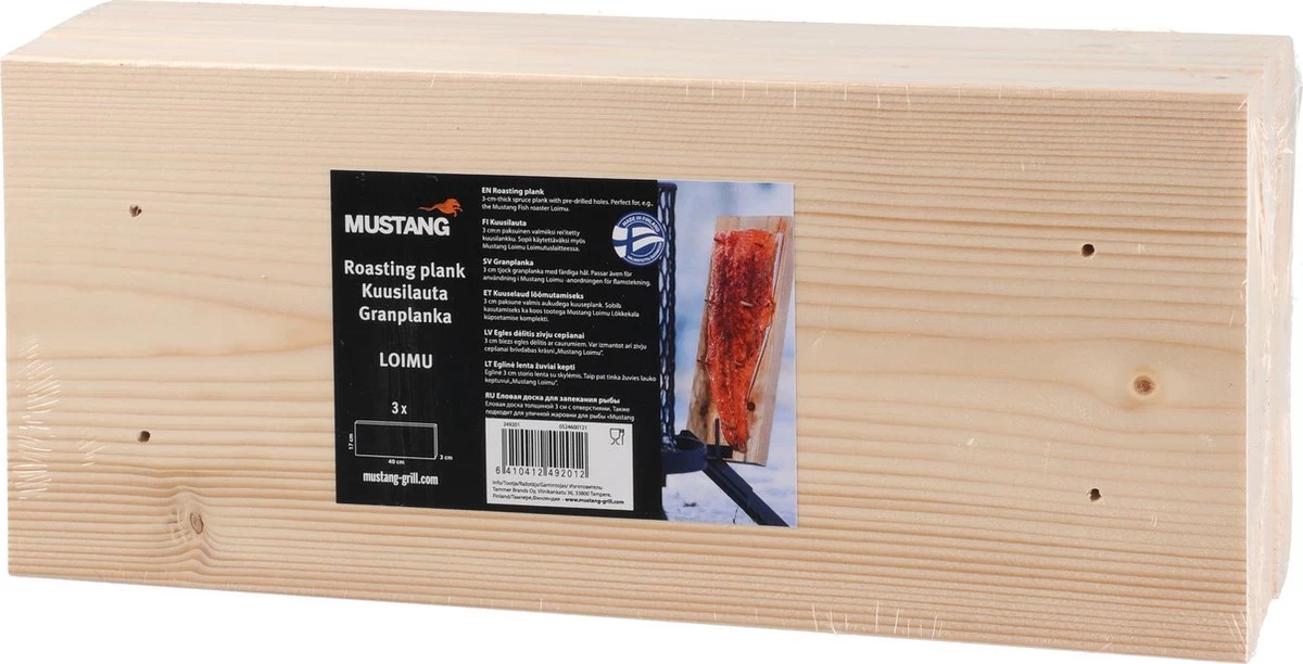 | Contenu de l'emballage | Planche d'épicéa de 33 mm d'épaisseur avec trous pré-percés pour clous en bois. Peut être utilisé dans Mustang Loimu. |