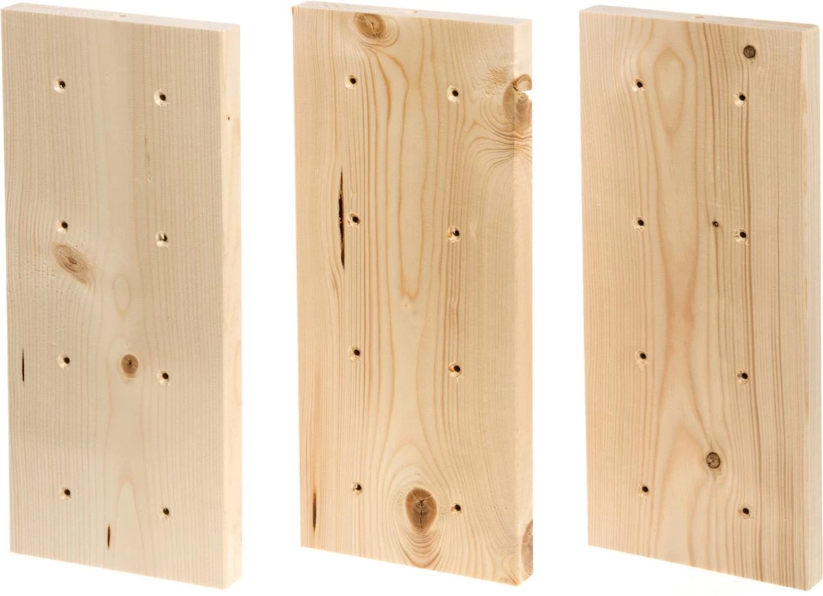 Planche d’épicéa de 33 mm d’épaisseur avec trous pré-percés pour clous en bois. Peut être utilisé dans Mustang Loimu.