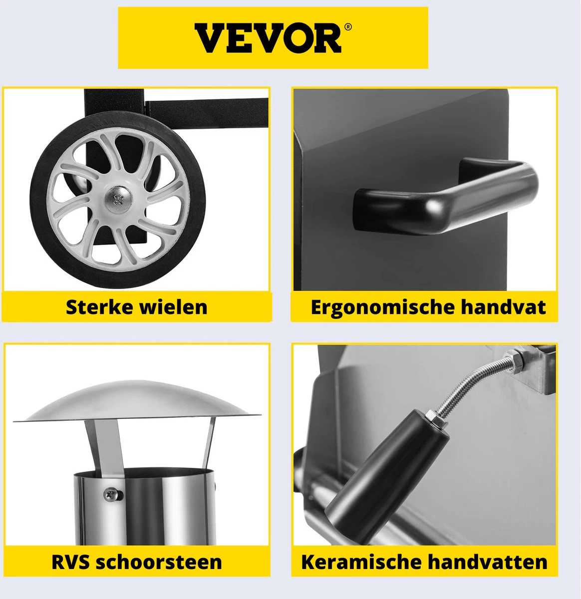 Amusez-vous à cuisiner des pizzas à la maison avec le four à pizza Vevor ! Ce four à pizza a deux roues pour que vous puissiez le déplacer facilement. Rien de tel que de s’amuser avec toute la famille en faisant des pizzas et en mangeant ensemble. À travers leconception durable pouvez-vous profiter de votre four à pizza toute l’annéesans que ça rouille † De plus, le four à pizza Vevorsuper facile à nettoyer et à entretenir ! Vous avez le four à pizza complètement propre et prêt pour la prochaine utilisation en 5 minutes !