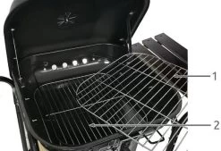 - Grilles : chromées (2 pièces – une pour la nourriture et une pour le charbon de bois)
