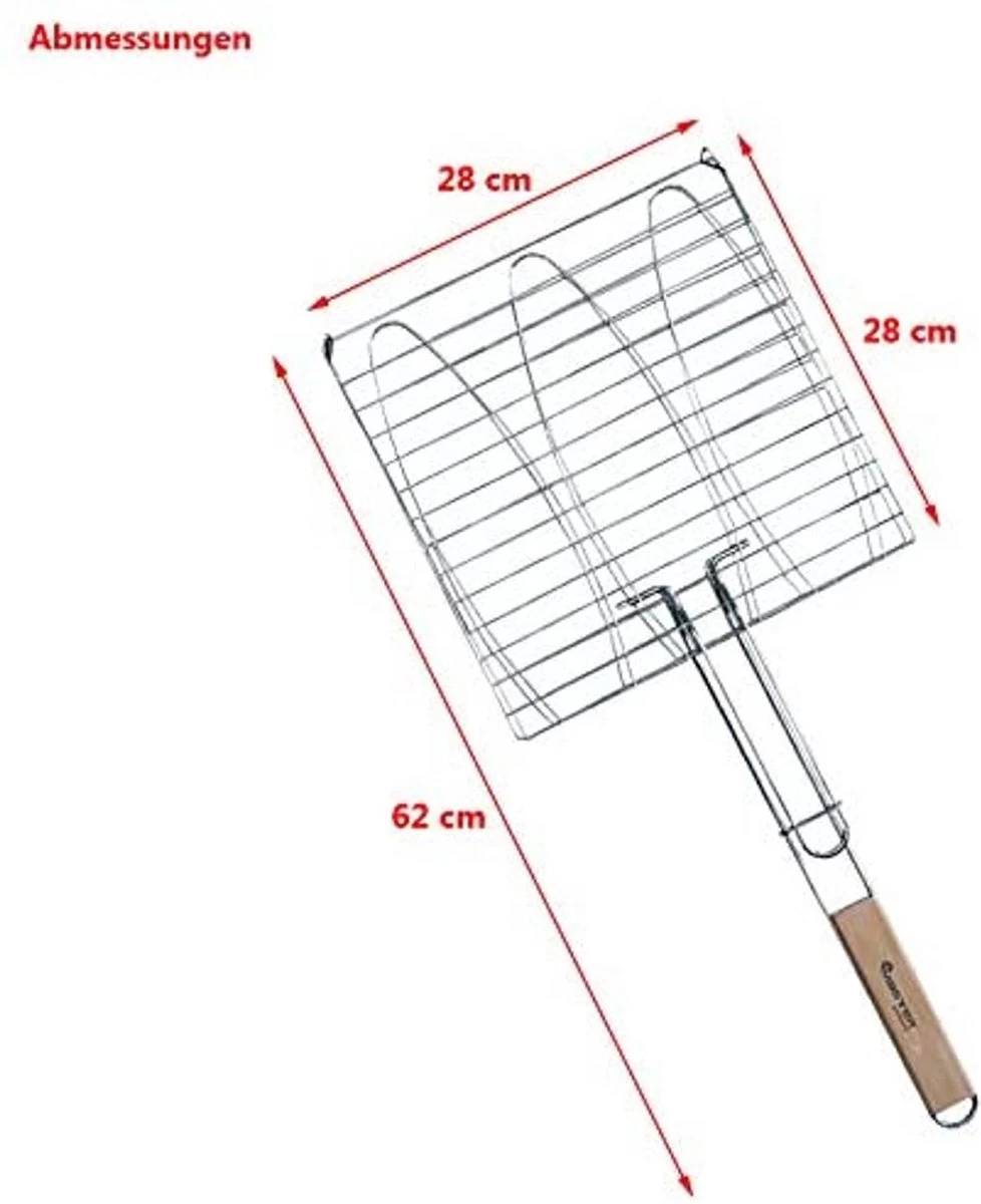 Grill à Poisson 28x28cm Grill à Poisson – Porte-poisson Avec Manche En Bois En Acier Chromé