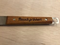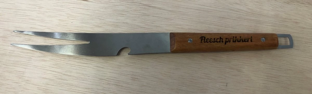 L’outil est en acier inoxydable (INOX) et est extra long pour un barbecue facile et sûr. De plus, les outils ont un beau manche en bois que nous avons également pourvu d’une gravure ludique à l’aide de notre machine laser.
