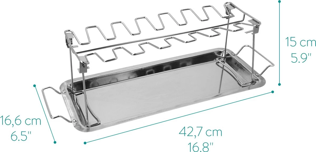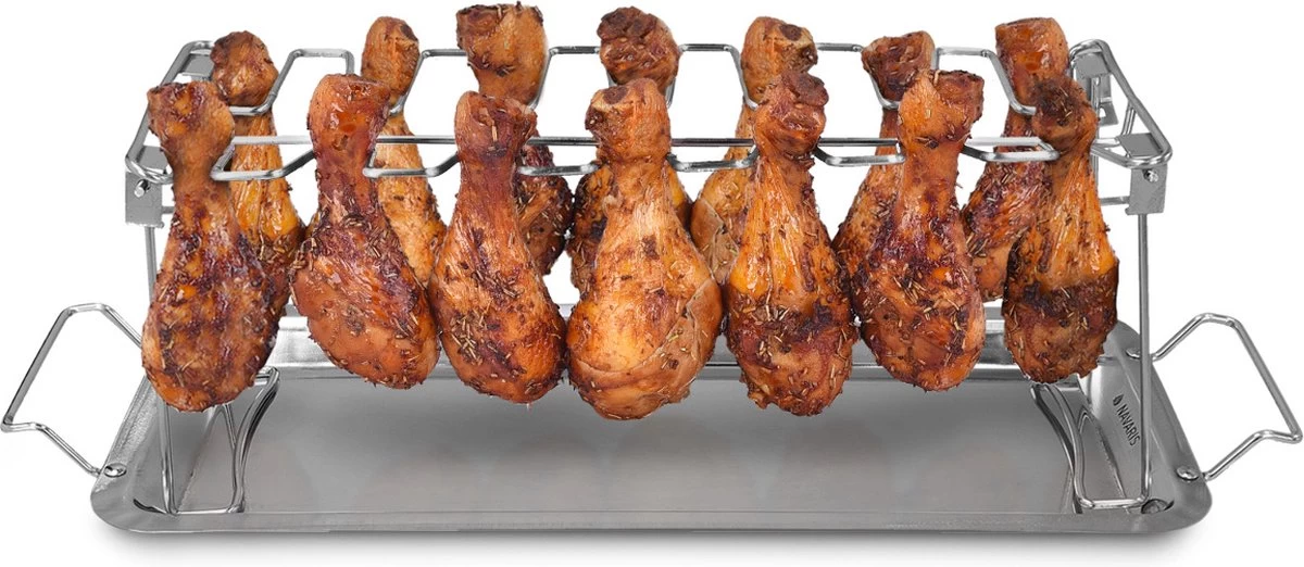 Grille de cuisson en acier inoxydable Navaris pour une cuisson uniforme et moins grasse des cuisses ou des ailes de poulet. Convient pour barbecue à gaz ou à charbon, grill et four.