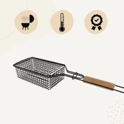BBQ de chez Organge85. L’outil de barbecue idéal pour compléter votre barbecue. La grille sert à griller vos légumes et viandes préférés. Le gril peut en principe être utilisé sur n’importe quel barbecue. La grille de BBQ est placée sur la grille du BBQ et est si simple à utiliser. Le manche est en bois et la grille en métal. Cela permet de laver la grille du BBQ au lave-vaisselle.