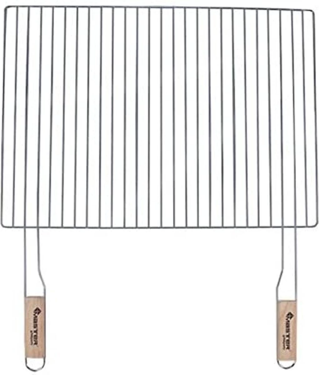 Grille De Gril 54x38cm Avec 2 Poignées En Bois, Grille De Gril En Acier Chromé Grille De Rechange Pour Fixation Du Gril
