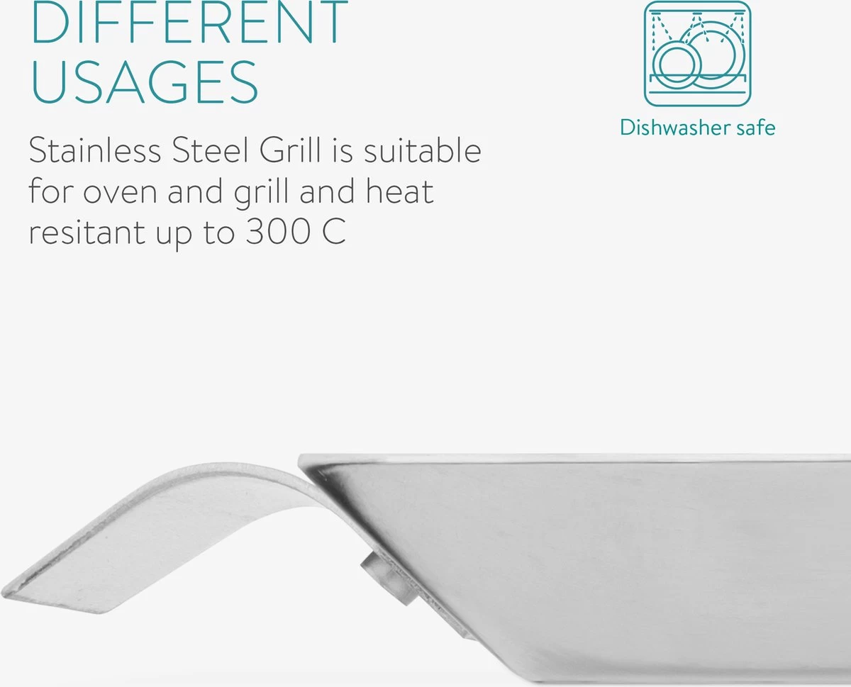 - GRIL : Vous pouvez utiliser cette grille pratique pour cuire de la viande, du poisson ou des lĂ©gumes au barbecue ou au four. Grâce aux poignĂ©es pratiques, vous pouvez Ă©galement l’utiliser pour servir des plats prĂ©parĂ©s.