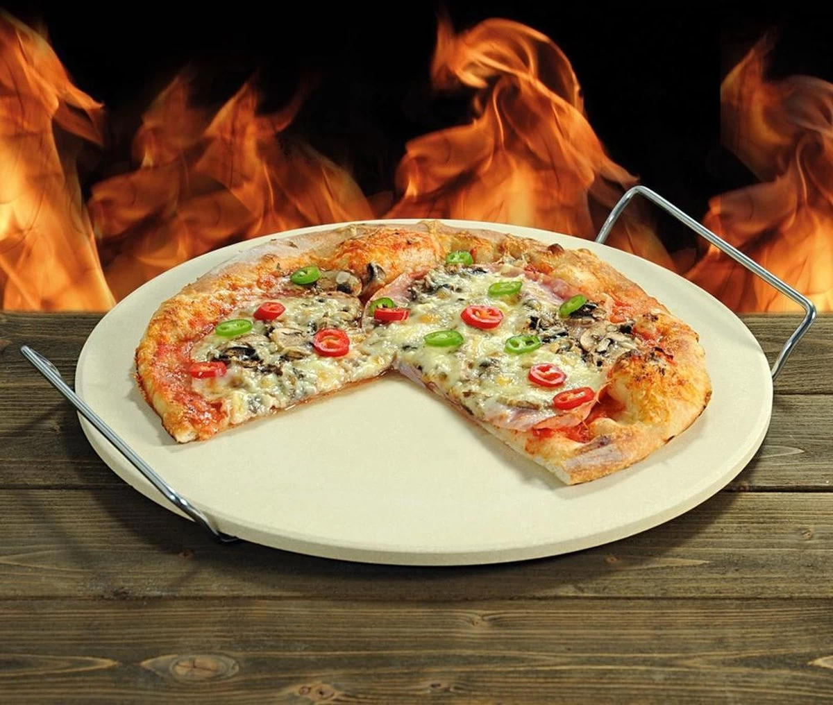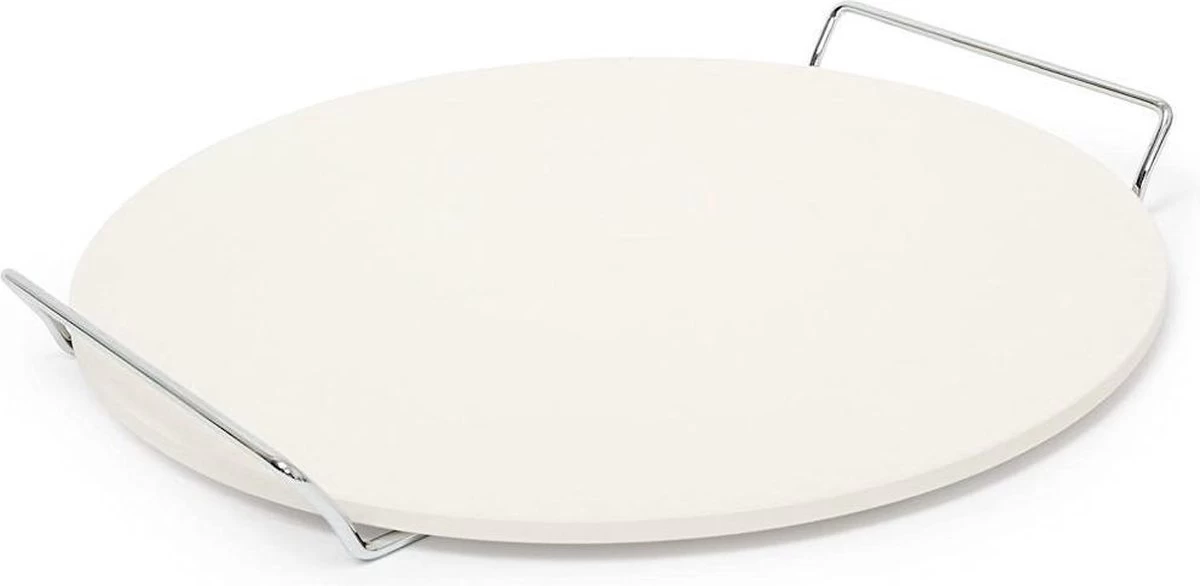 Servez votre pizza sur cette pierre à pizza au moyen du support de service chromé assorti. Ce support est équipé de poignées, de sorte que vous pouvez facilement déplacer cette pierre à pizza sans vous brûler les mains. Il est également possible d’utiliser cette pierre à pizza pour cuire du pain et des biscuits.