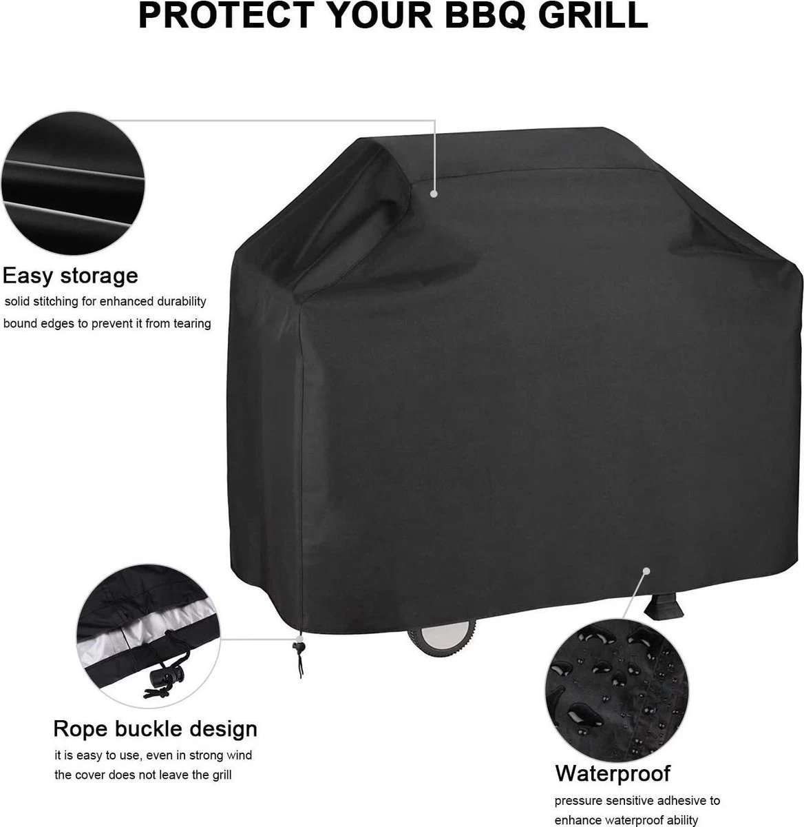 •?? Facile à utiliser – Les housses de BBQ sont livrées avec un cordon de serrage et une fermeture à bouton au bas de la housse, ce qui permet d’ajuster l’ajustement pour différentes grilles. Bords épais collés pour éviter les déchirures faciles Vous n’avez pas à vous soucier que la couverture soit emportée ou déchirée par des vents violents.