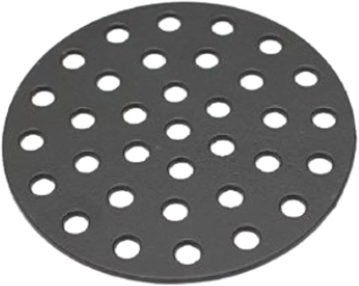 Grille à charbon en fonte. Cette grille est située au fond de la boîte en céramique du kamado. Les charbons sont placés sur la grille. Les trous dans la grille offrent une bonne puissance de traction.