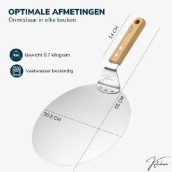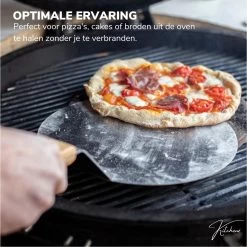 La lame de la pelle à pizza Kitchenz est conçue pour pelleter facilement les pizzas. La pelle à pizza Kitchenz est également équipée d’un rivet robuste sur le manche. Tout cela garantit un design très solide et beau.