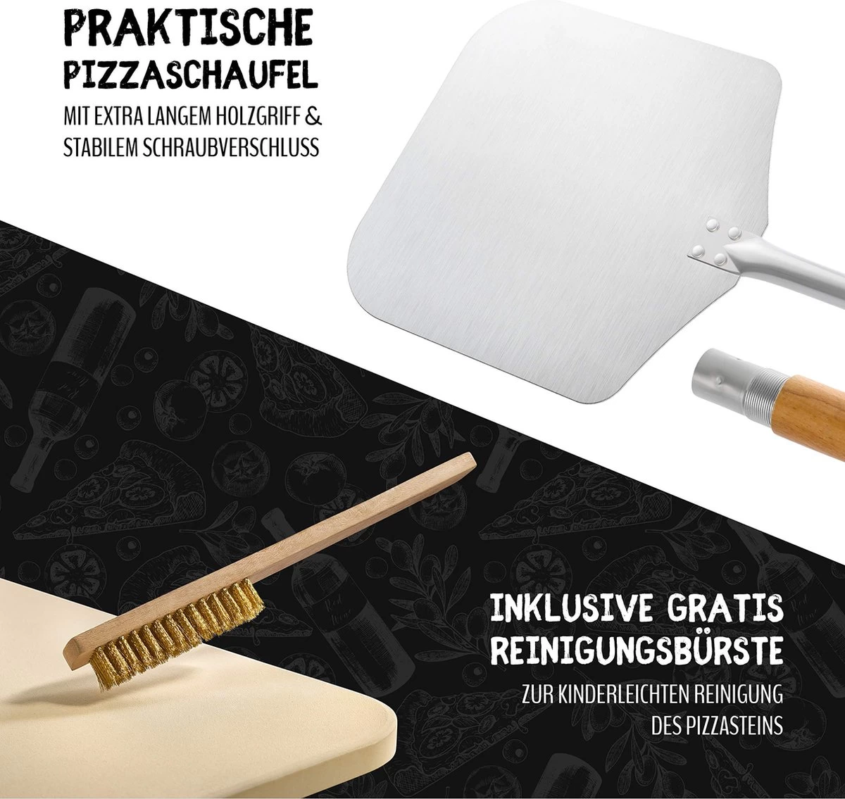 Liebspecht® Pierre à Pizza Et Poussoir à Pizza De Haute Qualité [FREE BRUSH] – Convient Au Four, Au Gril Et Au Gril à Gaz – Ensemble De Pierre à Pizza Pour Pizza Comme Dans Le Restaurant Italien – Pierre à Pain – Résistant à La Chaleur