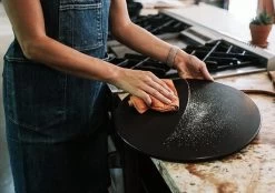 La pierre a une surface lisse où la pierre est facile à nettoyer. Pour maintenir la température plus constante dans un four normal, il y a la pierre à pizza. Vous le placez dans le four avant de le préchauffer. Une fois que le four a atteint la bonne température, placez la pizza sur la pierre à pizza. Cuire au four normalement, mais prévoir un temps de cuisson plus court car la pizza est maintenant également chauffée par la pierre. La croûte de la pizza sera plus croustillante et le fond est bien cuit 🙂