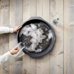 C’est donc bien si vous pouviez faire tremper votre grille dans de l’eau savonneuse, après quoi la saleté et la graisse peuvent être facilement éliminées avec une brosse. Cependant, il n’y a pas de grands conteneurs … jusqu’à présent, car maintenant il y a le GRILL WASH.