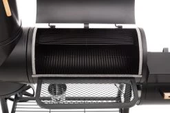 La fumée est acheminée à travers la cheminée à travers le gril/chambre à fumée (tour). Au sommet de la cheminée se trouve la vanne qui régule le tirage. Des roues robustes et larges facilitent le déplacement du Georgia Smoker XXL. Le couvercle est équipé de deux thermomètres fiables, qui aident à surveiller la température dans le gril/chambre à fumée. Les sondes du thermomètre à viande peuvent être placées dans les chambres de gril/fumée via une glissière séparée.