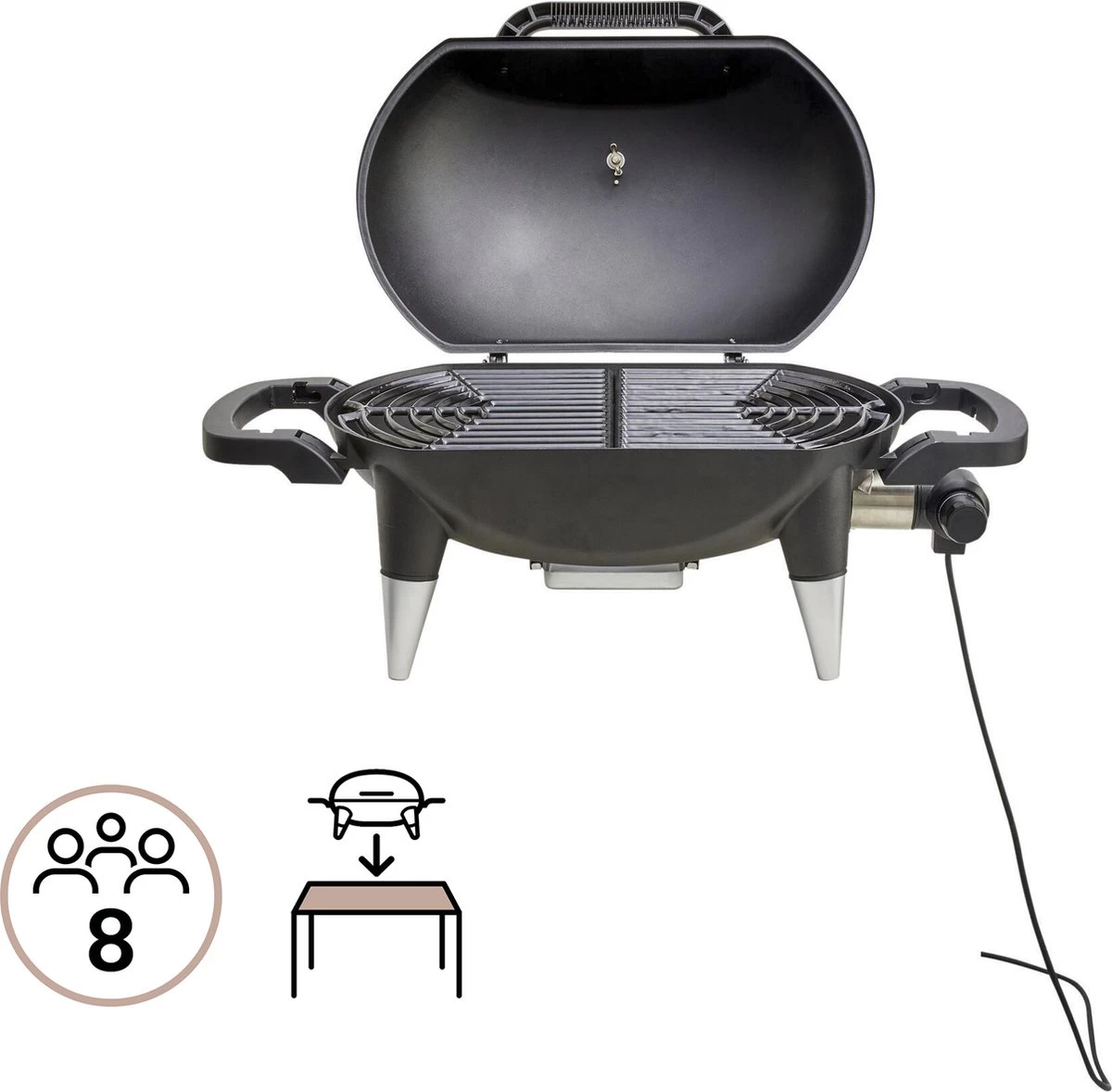 Cuisiner sur votre balcon n’a jamais été aussi pratique qu’avec le gril électrique HYPERION, adapté aux petits espaces. Il est idéal pour cuisiner à 8 personnes, parfait pour les repas entre amis ou en famille. Indépendant et résistant, le gril électrique dispose d’un double mode de cuisson qui vous permet de conserver une chaleur homogène. Le couvercle avec thermomètre intégré garantit une cuisson rapide et précise. Le gril chauffe rapidement et peut être placé n’importe où pour préparer de la viande, du poisson, des légumes et même des œufs. Grâce aux poignées des deux kanten du gril et à son poids léger, vous pouvez facilement déplacer le gril et le placer sur la table. Le bac à graisse amovible facilite la collecte de la graisse et de l’huile et facilite le nettoyage à la main ou au lave-vaisselle. La cuve entièrement émaillée garantit une longue durée de vie car elle est résistante à la rouille et à la chaleur.