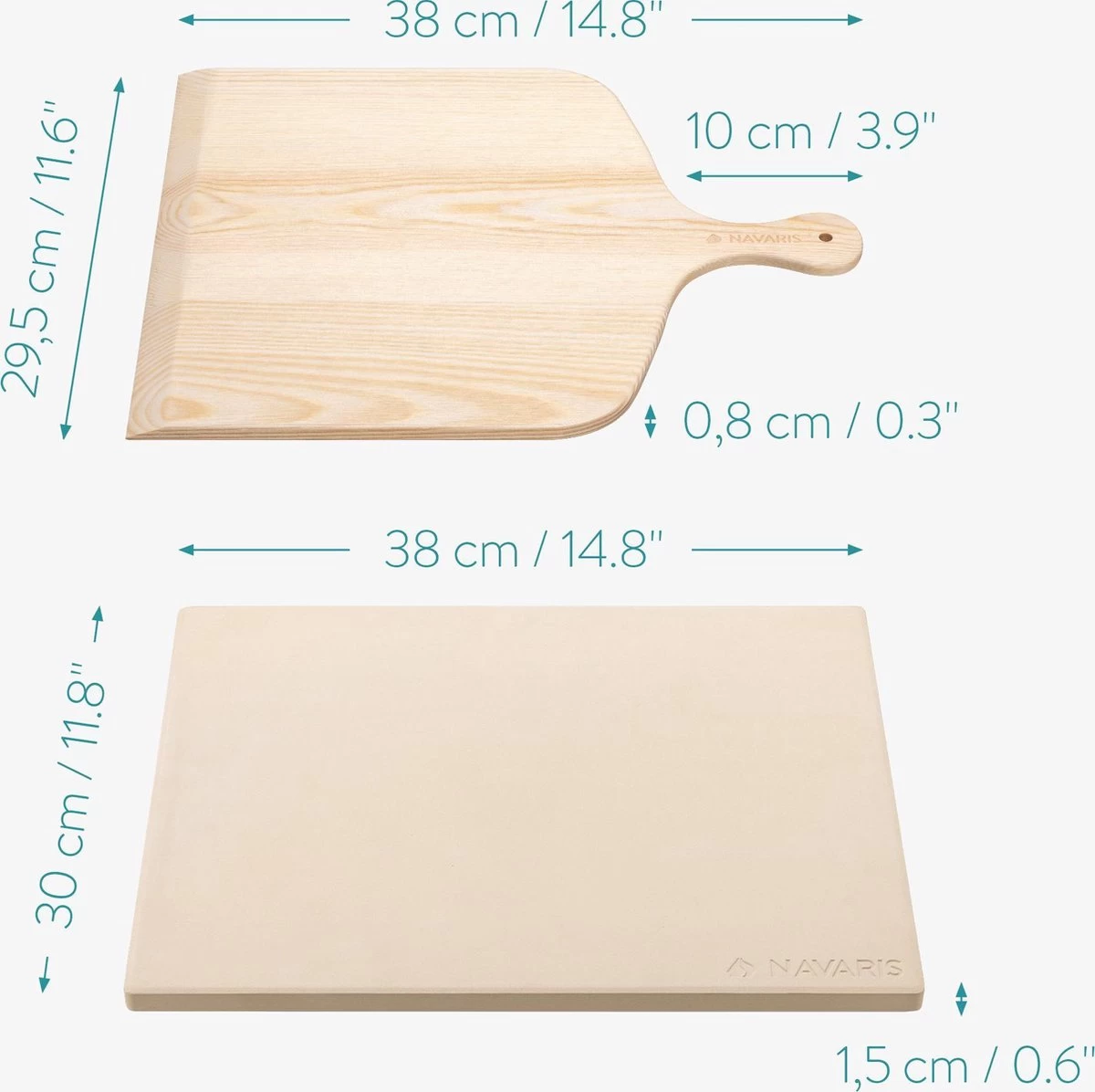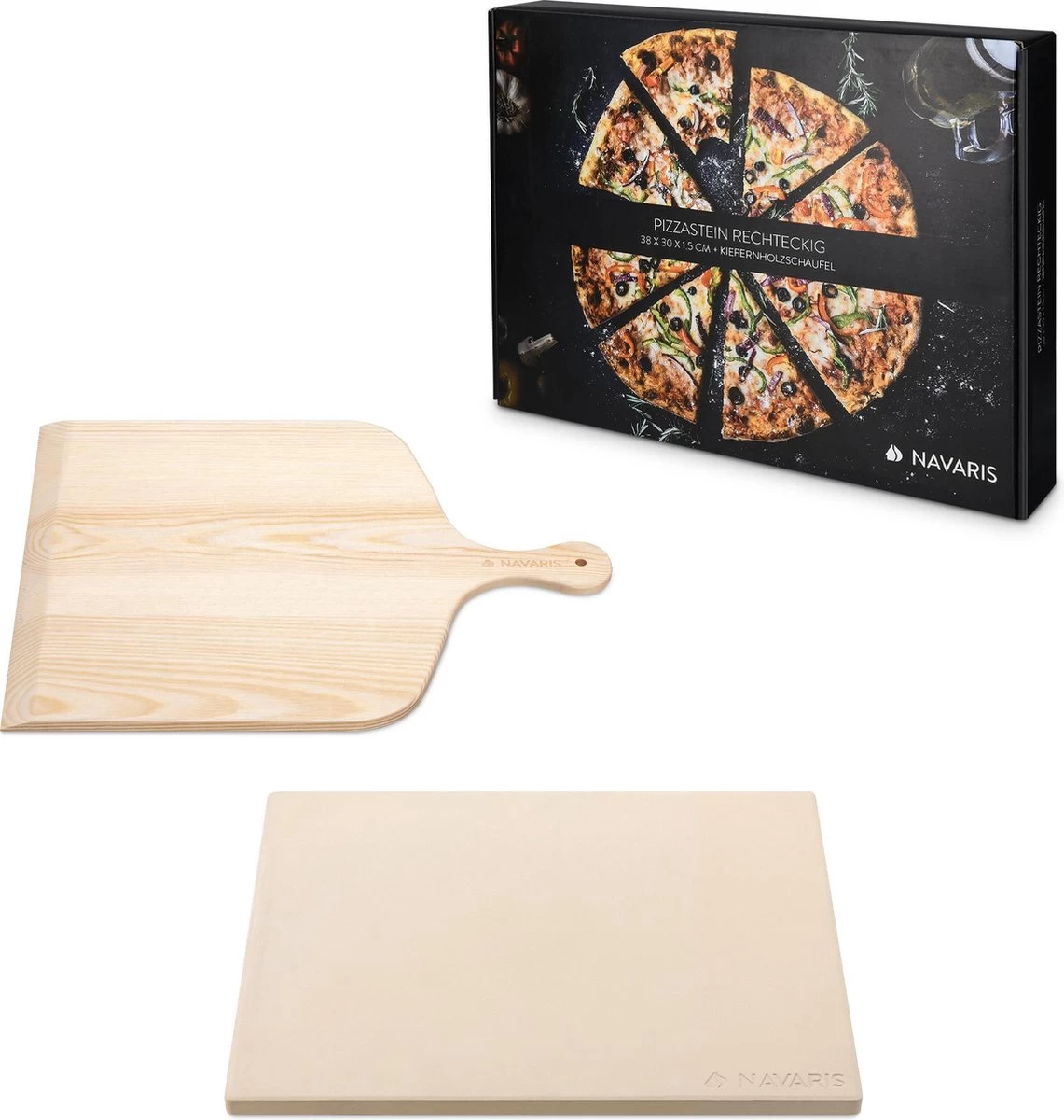 Navaris les pizzas les plus délicieuses avec cet ensemble Navaris composé d’une pierre à pizza et d’une pelle à pizza.