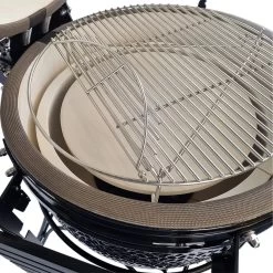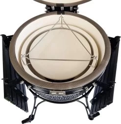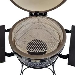 L’Obelix Large 22″ Kamado est le eigen kamado d’Allesvoorkamado ! Ce grand kamado robuste possède une grille de 48 cm de diamètre avec laquelle vous pourrez facilement préparer les plus grosses pièces de viande ou griller jusqu’à 10 personnes ! Il est équipé en standard d’une insoleuse de plaques avec laquelle vous pouvez griller directement et indirectement. L’évent supérieur de précision en aluminium et le double curseur avec grille vous permettent de réguler parfaitement le débit d’air, ceci en combinaison avec le joint en fibre de verre et le mécanisme de verrouillage qui empêche le faux air, fait de l’OBelix un régulateur de température idéal ! Le mécanisme de verrouillage s’ouvre et se ferme automatiquement avec l’ouverture et la fermeture du dôme ! La base de conception garantit que l’Obelix est bien soutenu et qu’il est un véritable accroche-regard !