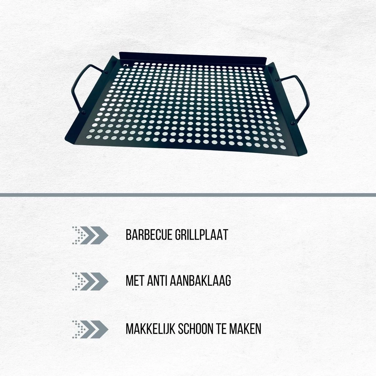 Avec la plaque de gril Orange85 , la viande, les légumes ou les fruits sont faciles à griller. Vous pouvez placer la plaque de gril sur votre barbecue afin que les aliments ne puissent pas tomber à travers la grille. Idéal avec, par exemple, des saucisses ou du poisson. La plaque a un revêtement antiadhésif qui empêche les aliments de coller. Cela le rend également facile à nettoyer. Il est également fabriqué en acier inoxydable, il va donc au lave-vaisselle.