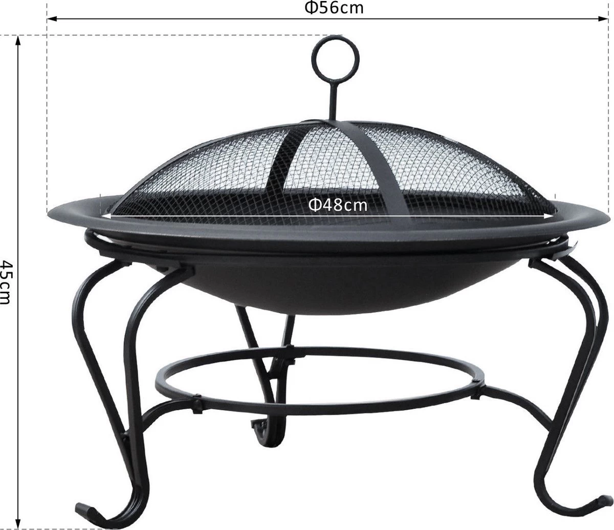 Matériau : Métal peint en noir Dimensions : 56 x 45 cm (L x H) Grille : Ø 35 cm Couverture : 48 x 22 cm (Ø x H) Poids : 4,5 kg Couleur : noir