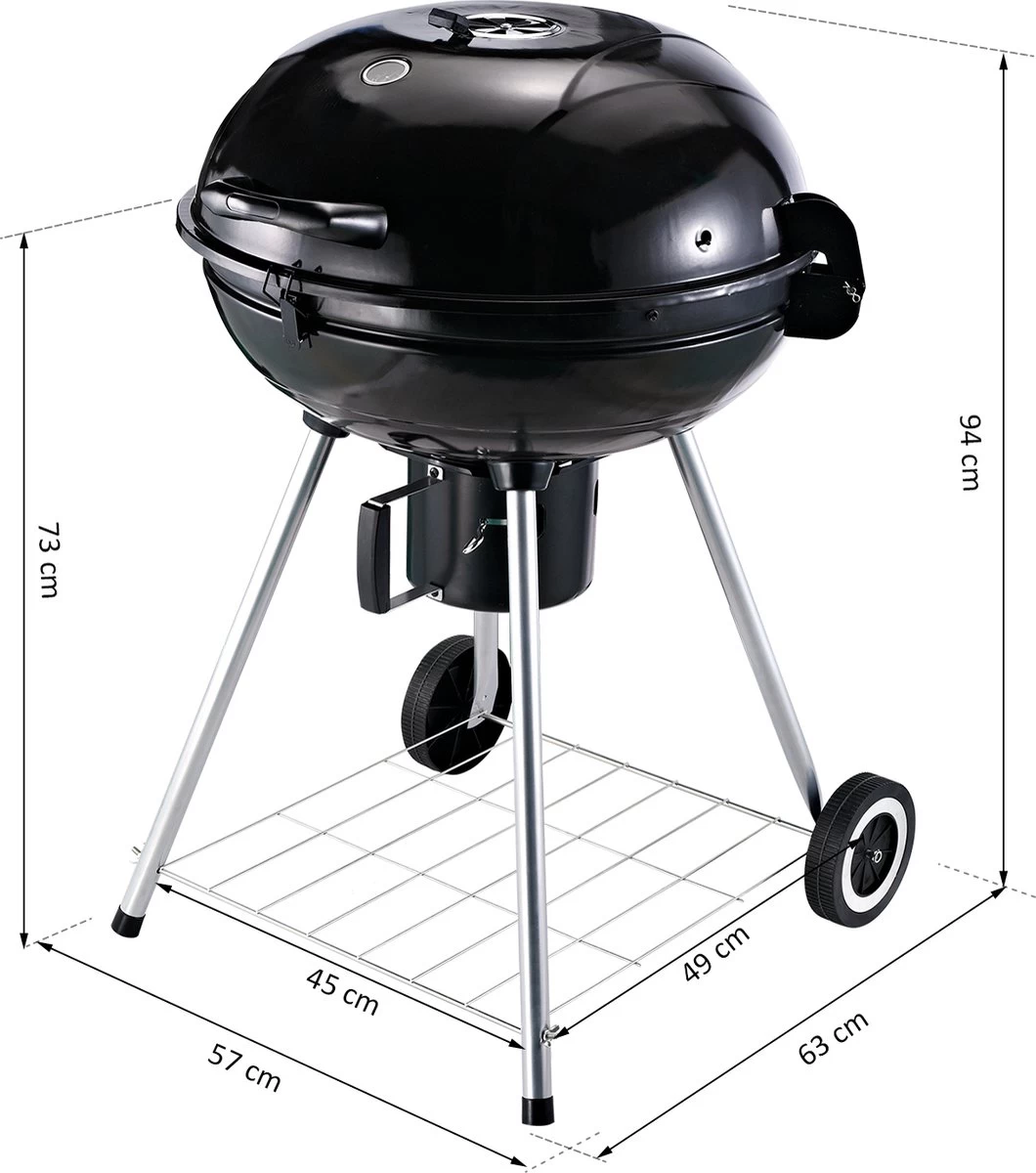 Outsunny Gril Chariot Charbon De Bois Pique-nique Gril Barbecue Avec Récupérateur De Cendres Métal Rond 846-021